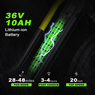 In Frame and Removable 36V 10Ah Lithium-ion Battery.