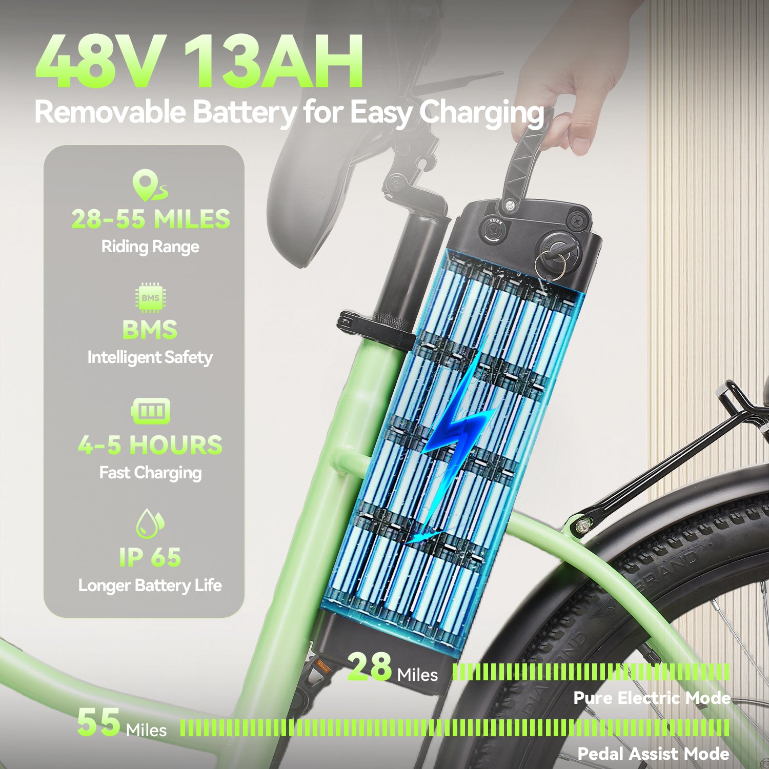 ZNH 19sr Electric Bike for Adult,48v 13ah Removable Battery,UL2849,Green