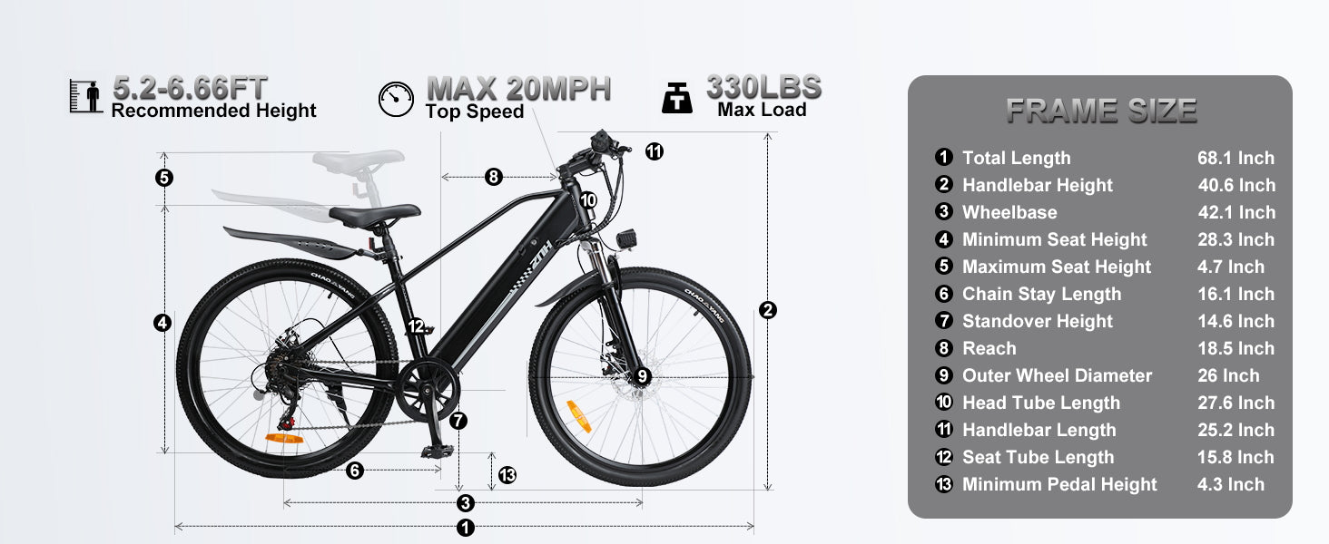 ZNH Electric Bike for Adults, 500W Motor, 26" Tires, 36V 10.4Ah Removable Battery, 50 Miles Range, 20 MPH Speed, Commuter City Ebike for Men and Women